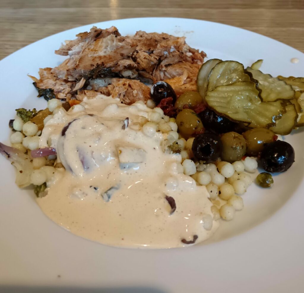 - Гарнир:овощной кускус.