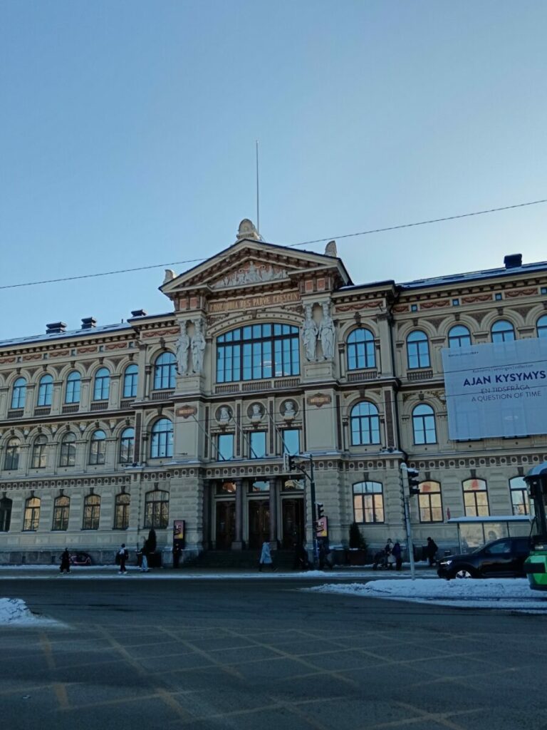 Строительство здания музея Атенеум, выполненного в стиле неоренессанса на южном краю площади Rautatientori, по проекту архитектора Теодора Хёйера, было завершено в 1887 году. Музей открыл свои двери для посетителей год спустя. В здании, помимо Художественного музея Атенеум, располагалась Школа рисунка Финского художественного объединения, название которой в 1939 году было изменено на Финскую академию искусств, а после переезда в отдельное здание, и поныне оно носит гордое звание Академии изобразительного искусства (Kuvataideakatemia).