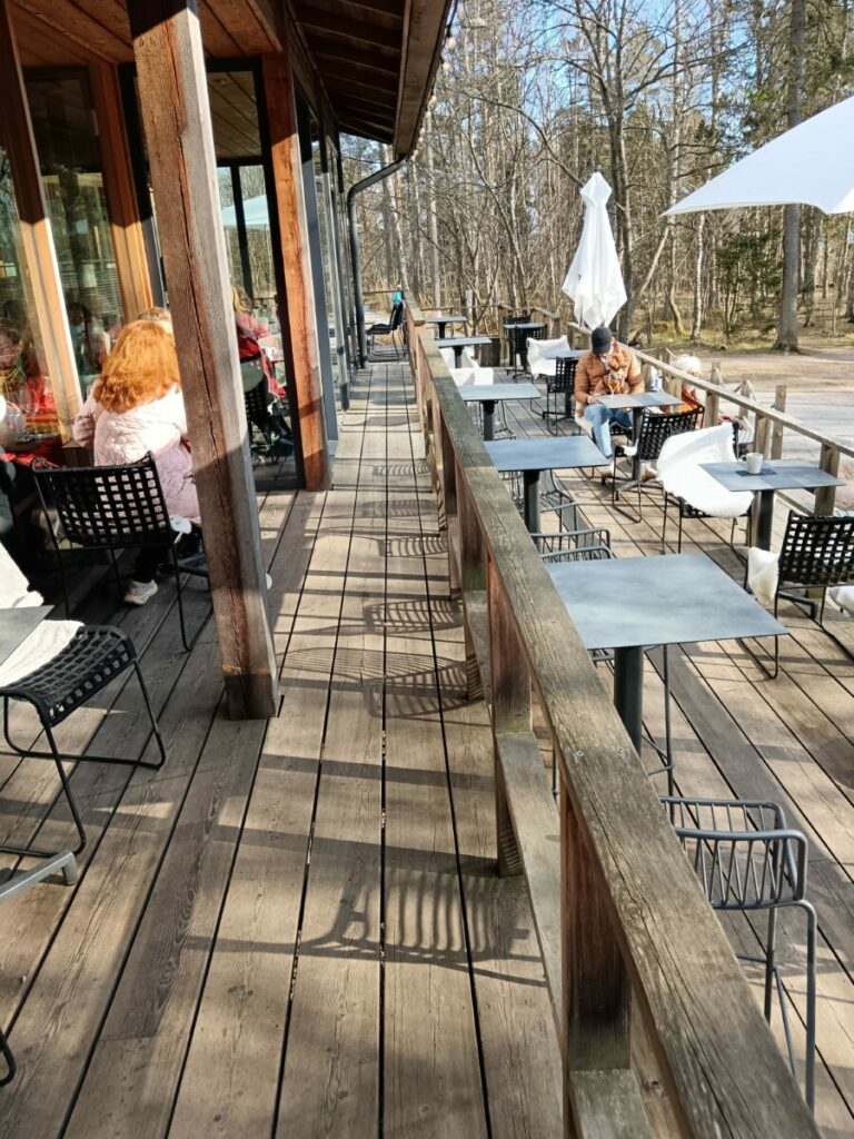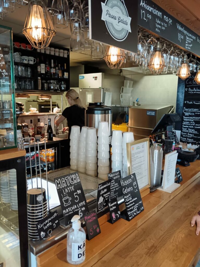 Эту пешеходную дорожку никто не видел безлюдной в светлое время суток. С приходом весны количество людей на ней многократно увеличивается. В середине пути пешеходов и спортсменов на берегу пляжа Вейяривуори встречают и манят панорамные окна большого деревянного здания из сибирской лиственницы, а стены заведения обвивают с трех сторон двухступенчатая веранда с многочисленными столиками. Это знаменитое кафе Paseo, расположенное на краю пляжа, популярное место для завтраков на берегу залива.