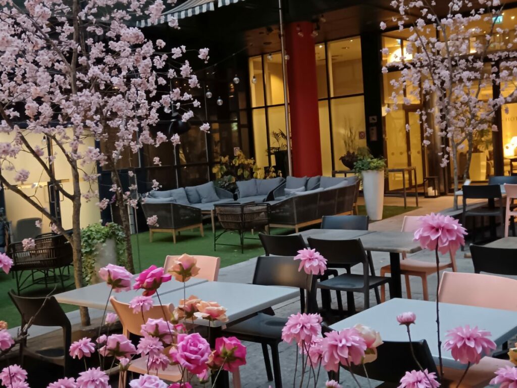Красочное убранство террасы ресторана, создает ощущение лета.