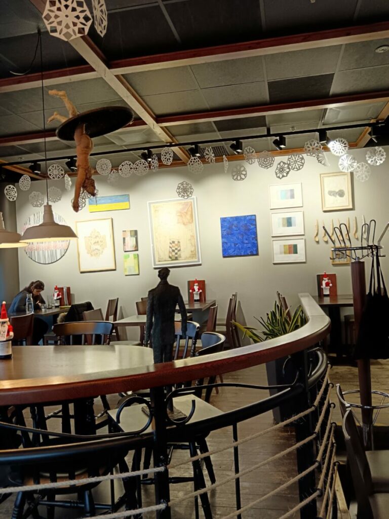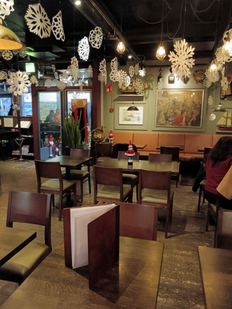 В зале в день моего посещения было довольно многолюдно. К традиционному оформлению ресторана добавились рождественские мотивы и аксессуары, создавая праздничное настроение.